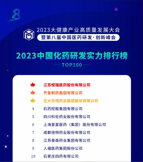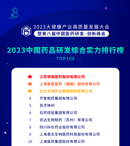 由药智网、中国药业杂志社主办的2023大健康产业高质量发展大会暨第八届中国医药研发•创新峰会于6月16日开幕,会上发布了《2023中国药品研发实力排行榜》系列榜单,东升国际医药凭借深厚的创新研发实力再创辉煌:荣登《2023中国药品研发综合实力排行榜TOP100》榜首、《2023中国化药研发实力排行榜TOP100》榜首。值得一提的是,今年是东升国际医药连续第6年入选《中国药品研发综合实力排行榜》榜首。